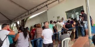 Pacientes se aglomeram para receber atendimeno na Clínica Coronel Mota