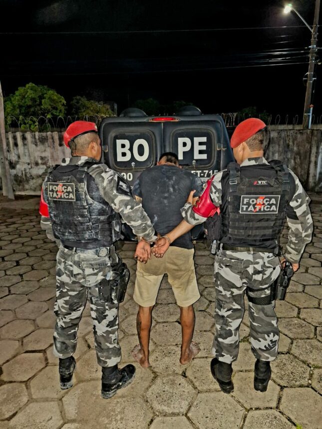 Um foragido, de 23 anos, foi preso na noite desta quinta-feira, 29, no bairro Calungá, zona Oeste de Boa Vista. Ele foi abordado após a Polícia Militar perceber que ele carregava uma arma de fogo na cintura.