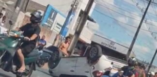 Carro capota após ser atingido por outro veículo na avenida Princesa Isabel