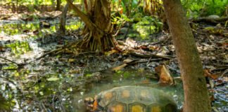 No Bosque dos Papagaios, jabutis vivem livres, protegidos e em harmonia com a natureza