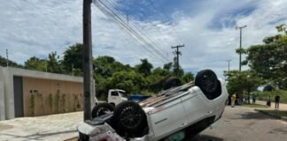 Veículo capota após bater em outro no Parque Caçari