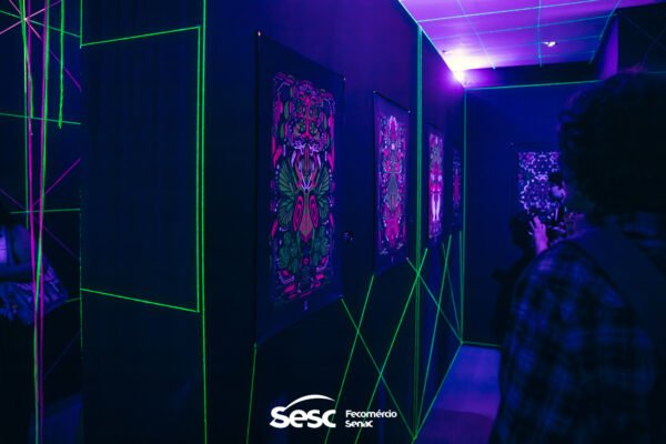 Além disso, o artista mergulha nas visualidades amazônicas para criar formas geométricas repetitivas, simétricas e intrincadas que vibram, movem-se e se transformam visualmente. As cores são para reagir à luz UV e provocar ilusões ópticas e efeitos caleidoscópicos. As obras assumem diversos suportes, como serigrafia, pintura, lambe-lambe, video mapping, técnicas de muralismo, ilustrações digitais e artes plásticas.